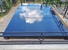 Укрываем внутреннюю зону участка геотекстилем и приносим три массивные прямоугольные плиты, которые в дальнейшем послужат наземным покрытием могилы.